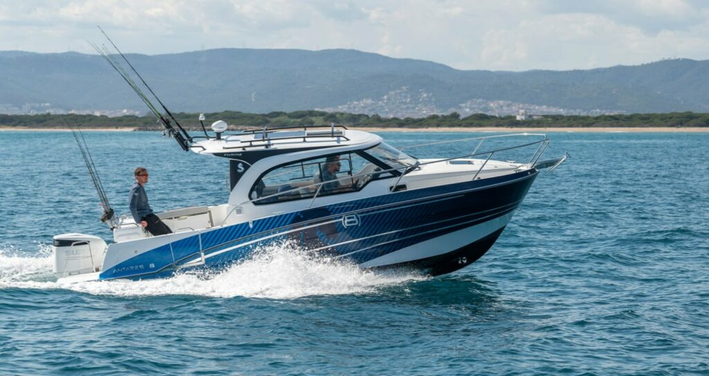 El Antares 8 Fishing adopta un look más deportivo que el Antares 8 Cruising y se beneficia de equipos específicos para los pescadores. Su bañera adaptable facilita los desplazamientos y está optimizada en los menores detalles.