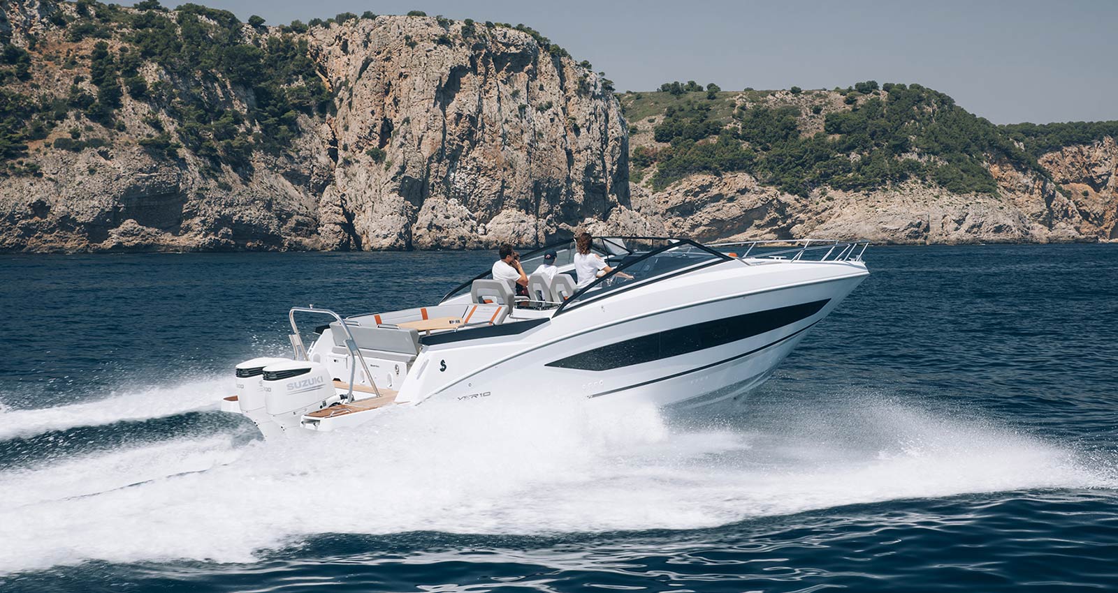 Propulsado por 2 x 350 CV, el Flyer 10 equipado con el Airstep® 2 planea en pocos segundos para conseguir más de 40 nudos.