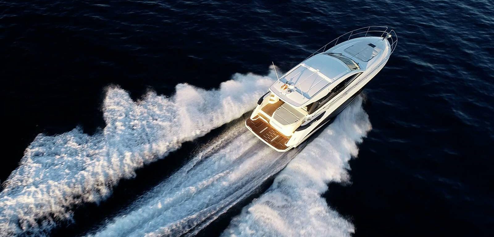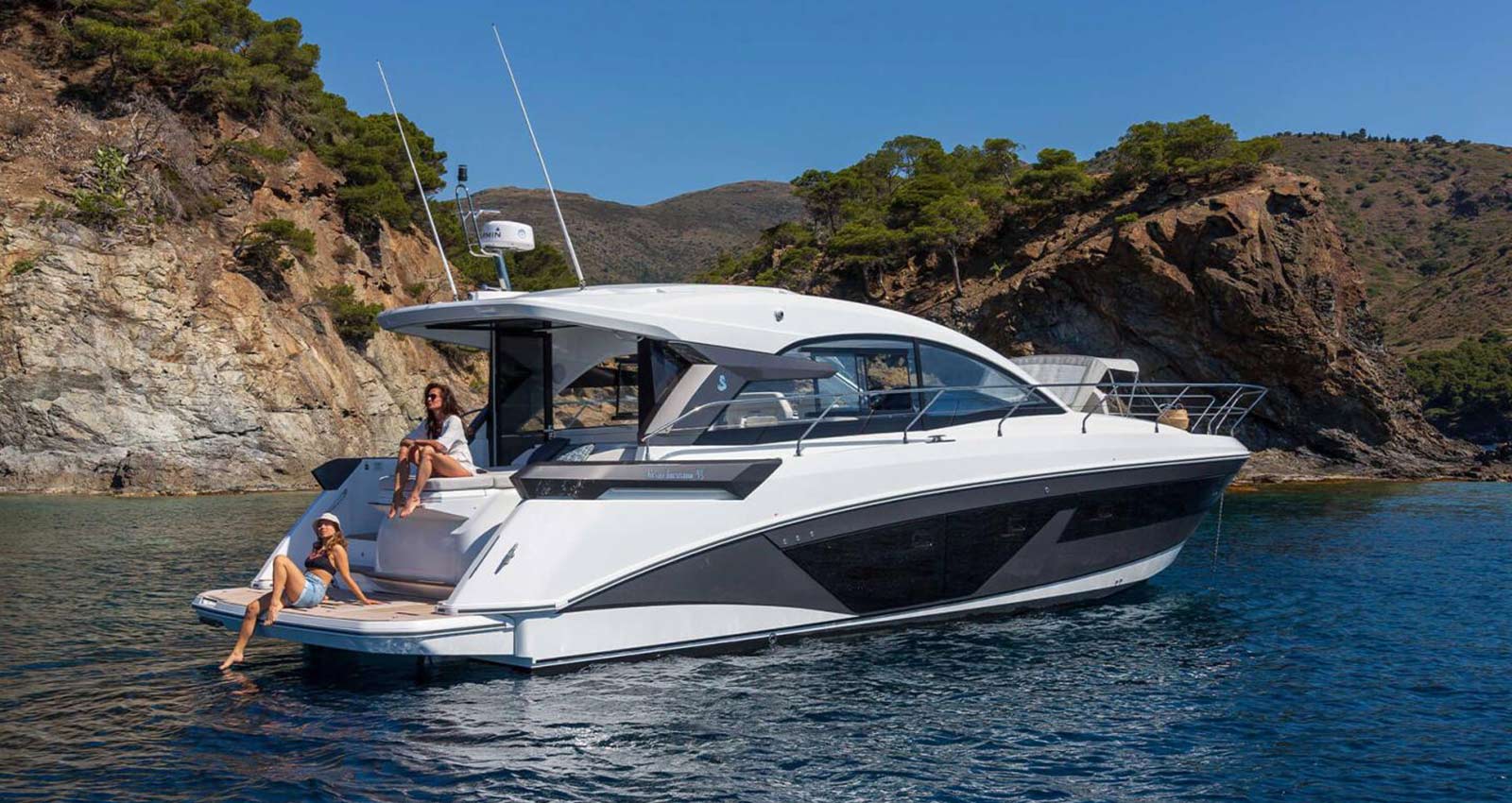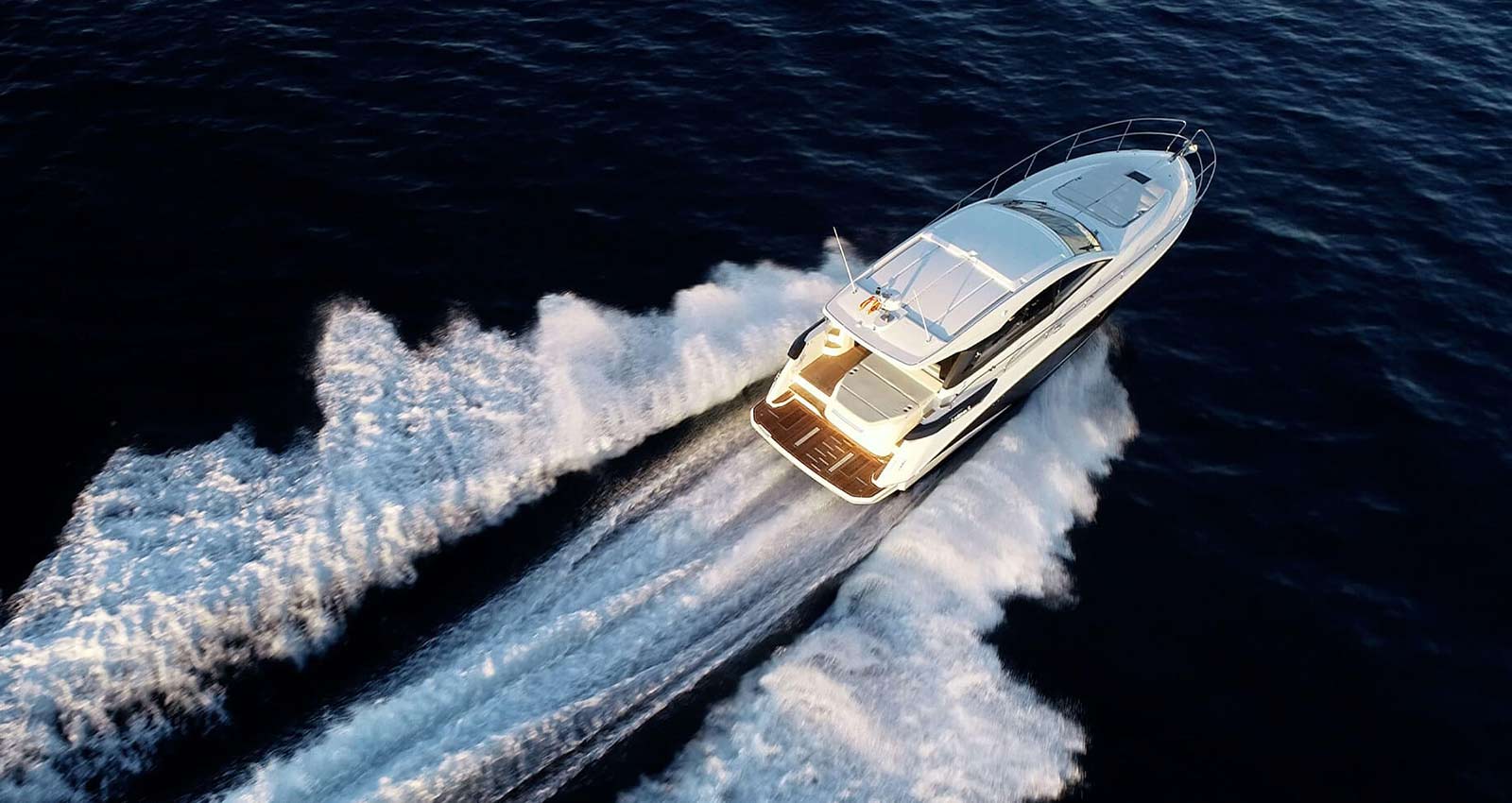 Por encima de los 14,78 metros de la unidad, encontramos las líneas elegantes, símbolos de la nueva generación de Express-Cruisers, una carena evocadora de deportividad, pero también detalles elegantes, como los « fashion plates » de color gris metalizado, fijados sobre los mamparos del hard-top y sobre las tomas de aire de los motores. El hard-top y las grandes cristaleras de casco, modernizan la línea del barco y aportan una agradable luz natural.