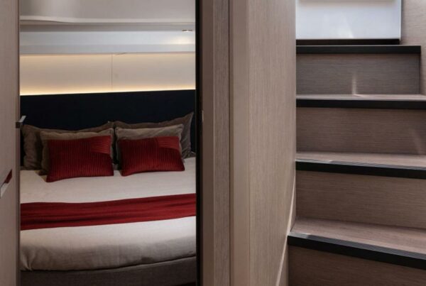 La cubierta inferior permitirá prolongar confortablemente el crucero con sus espacios luminosos y con la atmósfera refinada y Zen. La suite propietario propone un camarote de plena amplitud, con aseo y ducha separada, en cuanto al camarote VIP a proa, dispone de literas de tijera para adaptarse a sus ocupantes.