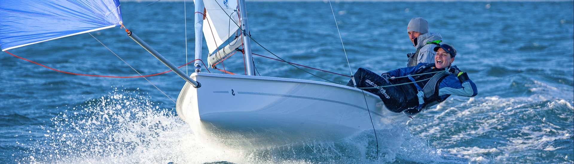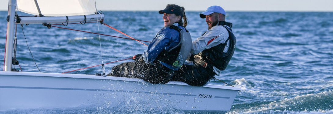 La carena moderna, amplia y plana con largos pantoques y su proa invertida crean un barco estable y seguro con un par de retorno suficientemente importante para prescindir de un trapecio.