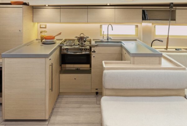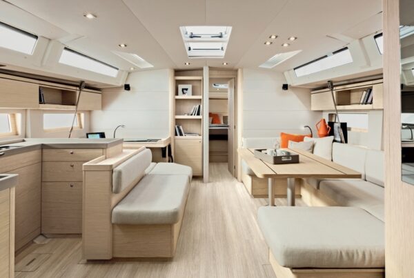 Los planteamientos arquitecturales que marcan fuertemente el Oceanis 51.1 se traducen en término de habitabilidad, por una ganancia de espacio inigualada. En el interior, el camarote armador con aseo y toilettes separados propone así una cama de 1,60 m de ancho accesible por los dos. La cocina en U totalmente equipada ofrece numerosos equipos de confort. Verdadero espacio de convivencia es agradable de utilizar tanto en navegación como en fondeo.